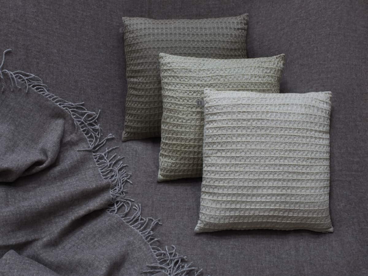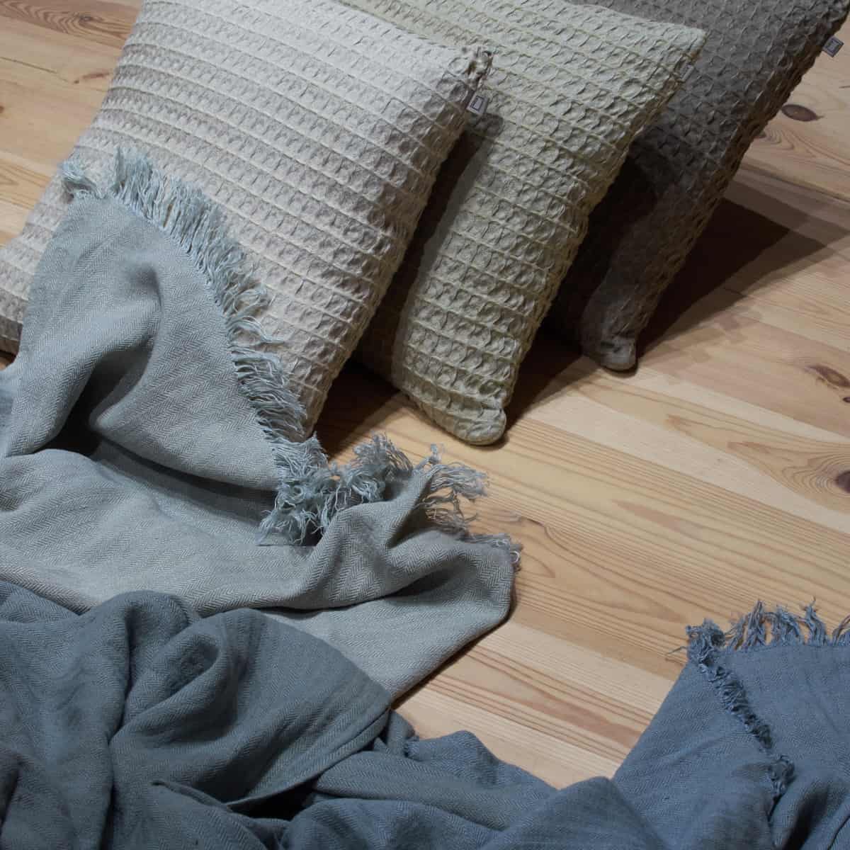 atspalviai – ramina bei lengvai dera šviesių tonų interjere. Lininė tekstilė yra labai maloni liesti ir tinkama