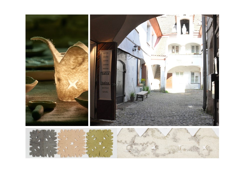 Užsiėmimo metu praktiškai išbandomas plokštumos vėlimo būdas, bei pasidaromi 4 veltinio padėkliukai po puodeliu (puikiai apsaugantys stalą nuo karščio) arba žvakidės gaubtas. Dekorui naudojamas augalais dažytos vilnos pluoštas, šilko atraižėlės, siūlų likučiai, aptariami ir pasirenkami galimi apdailos būdai – karpiniai, aplikacija. taip pat galima pasirinktinai naudoti ir smaigstymo vėlimo adatomis (sausasis būdas) technologiją – artėjant šventėms pasigaminti kalėdinį žaislą ar velykų margutį, angelą, segę ir kt.