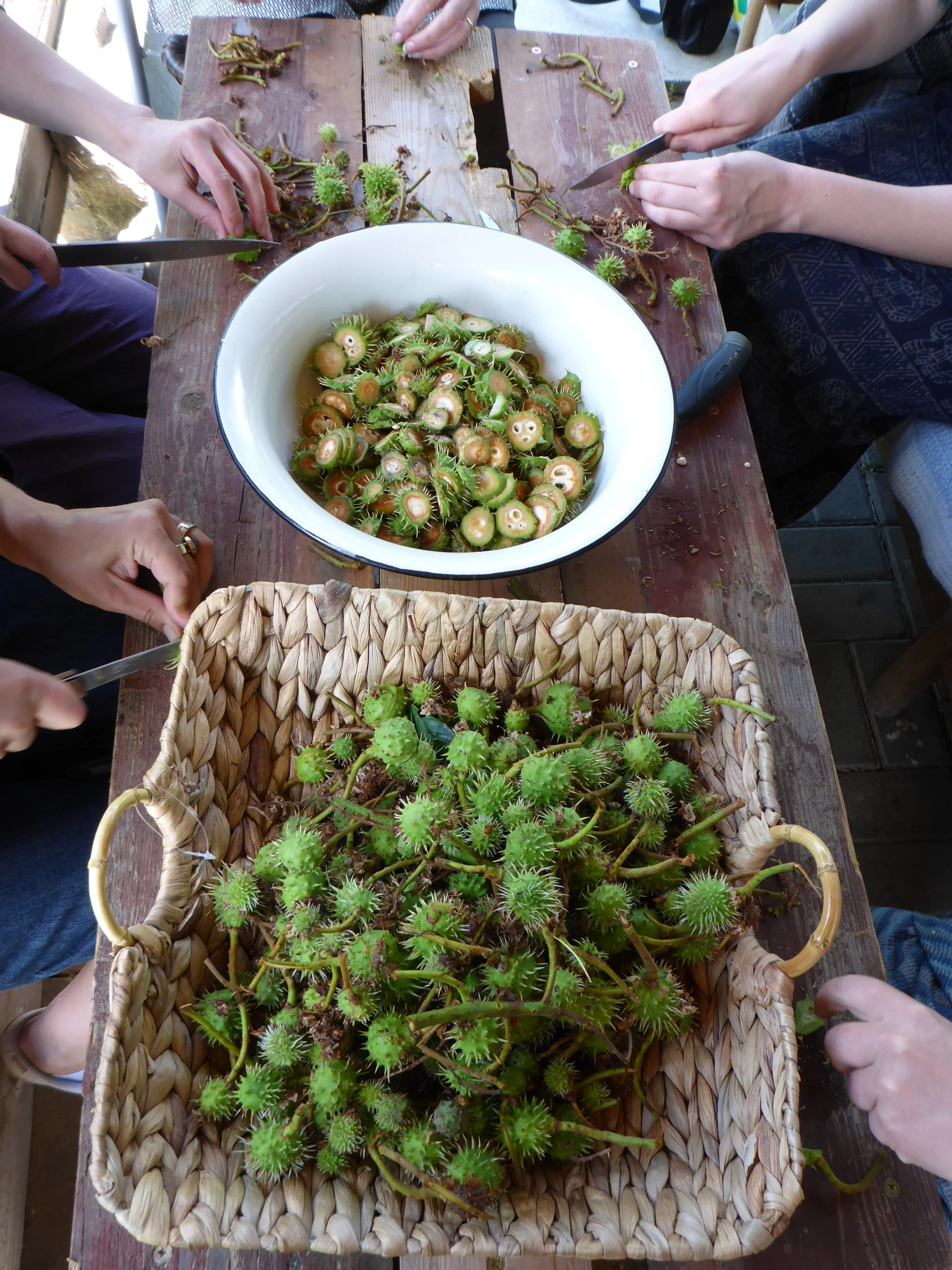 Užsiėmimo metu praktiškai išbandoma, kaip karštuoju būdu (šutinant) išgaunamas botaninis atspaudas. Susipažįstama su dažiniais augalais, jų lapais ir žiedais, marginama šilkinė skarelė arba šalikėlis. Kaitinimas fiksuojant augalų atspaudus vyksta ilgai, tad tuo metu galimos ir kitos veiklos, „Botaninio atspaudo“ mokymai (kalimo metodas) ar pasivaikščiojimas gamtoje, dažinių ir vaistinių augalų atpažinimas, rinkimas.