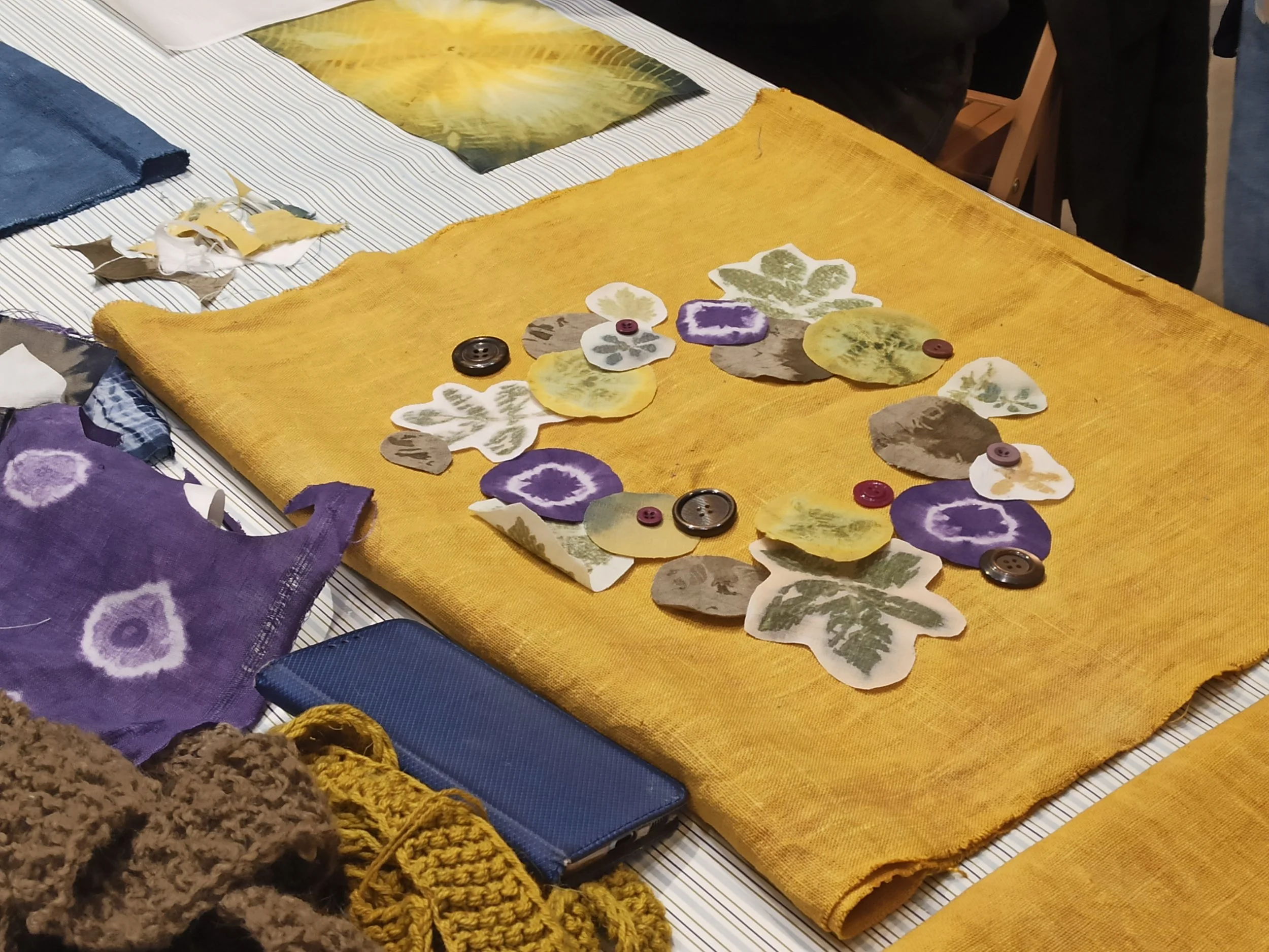 Užsiėmimo metu susipažįstama su aplikacijos technologija. Kuriamas pirkinių krepšio dekoras, mokomasi komponuoti skirtingas audinių skiautes, jas dygsniuoti ir prisiūti, esant poreikiui – siuvinėti. Naudojamos įvairių spalvų, skirtingais augalais, dažytos lino, šilko, vilnos audinių atraižos ir siūlai.