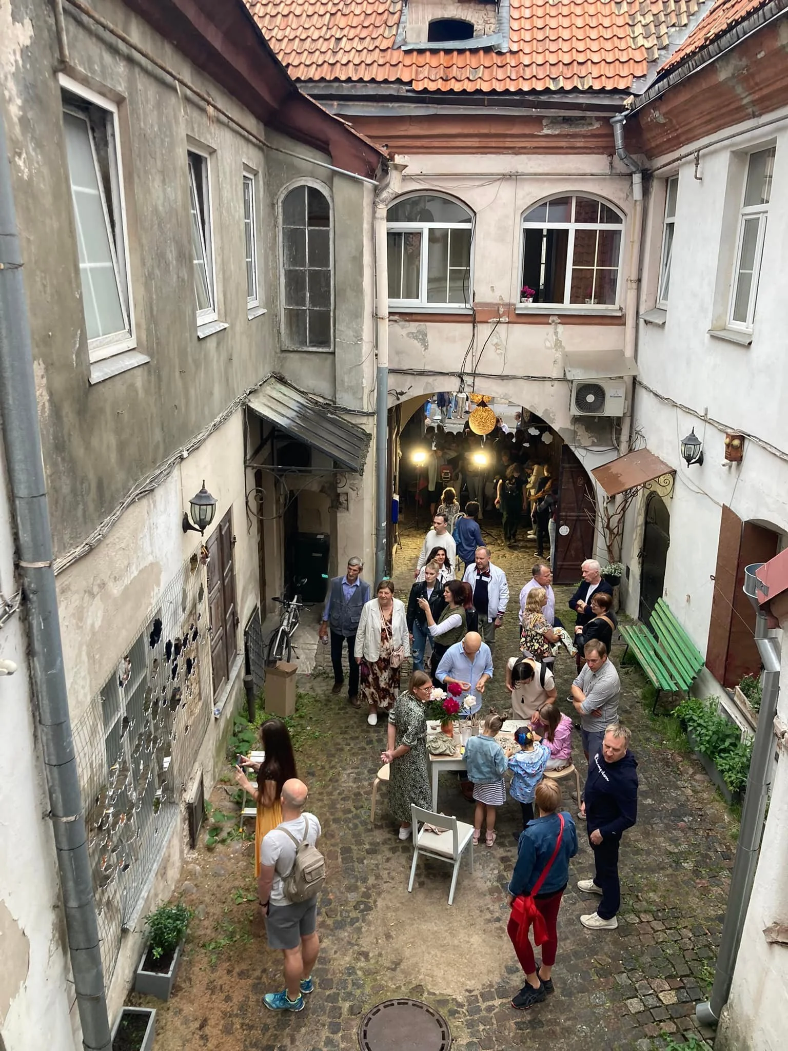 Pilies g. 32 kiemelis pilnas paslaptingų baroko laikotarpio pastatų. XIX a. čia lankėsi ir su kitais intelektualais bendravo tuomet kiemelyje veikiančioje kavinėje „Viktorija“ rašytojas A. Mickevičius. XX a. pradžioje šiame kieme - dirbtuves, o taip pat ir butus buvo įsigyję tokios asmenybės kaip dailininkas Vytautas Kalinauskas, Arvydas Každailis, Stasys Krasauskas, Leonas Lagauskas, Bronius Uogintas, vėliau grafikai Mikalojus Vilutis, Ramunė Vėliuvienė ir kiti. Dėl šios priežasties vis keitėsi ir šio kiemelio pastato pavadinimas, skirtingais laikotarpiais vadintas „Viktorijos namu“, „Romerių namu“, ar netgi „Dailininkų namu“.